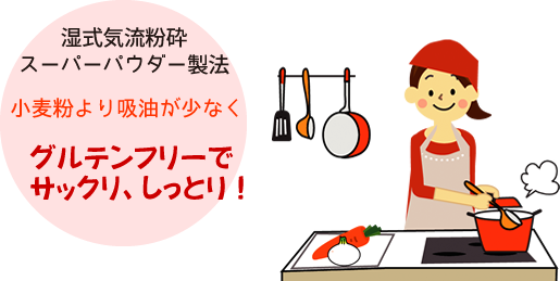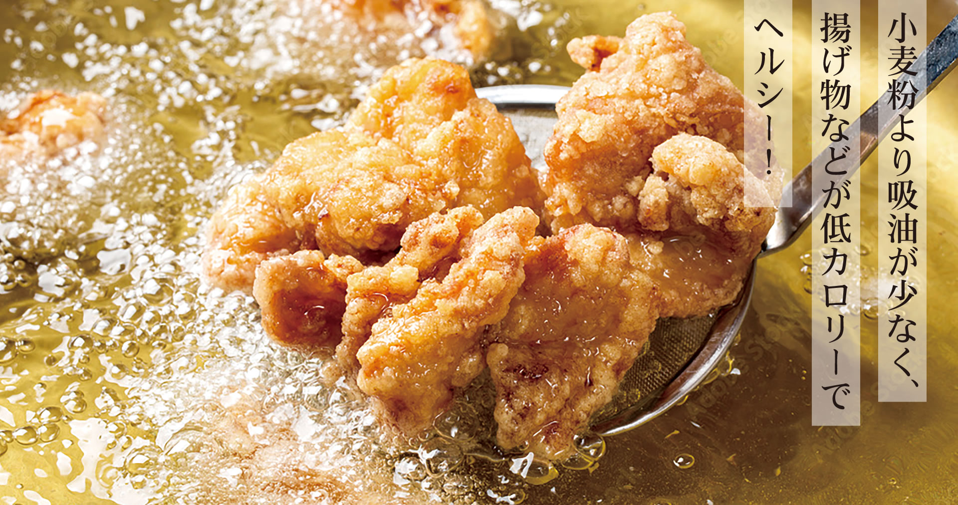 微粒子だから余分な粉が付かず、油を吸いにくいので揚げ物が低カロリーに。